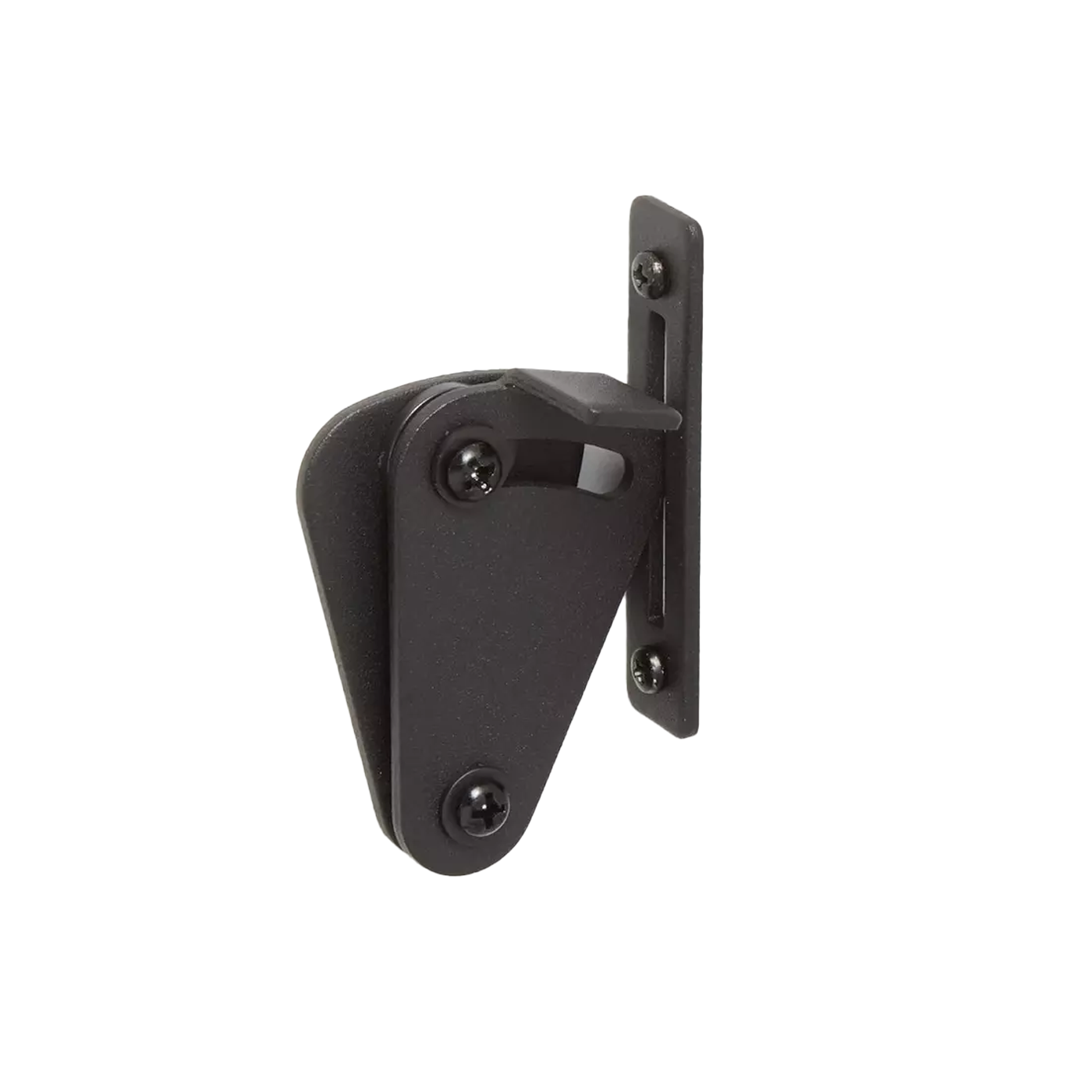 This teardrop-shaped Sliding Barn Door Latch is the perfect piece to add privacy to your bedroom, bathroom, or office. Made of durable steel, this latch can install universally on any interior barn door made of wood. Available in matte black powder coat to match existing hardware. Mounting screws are included.